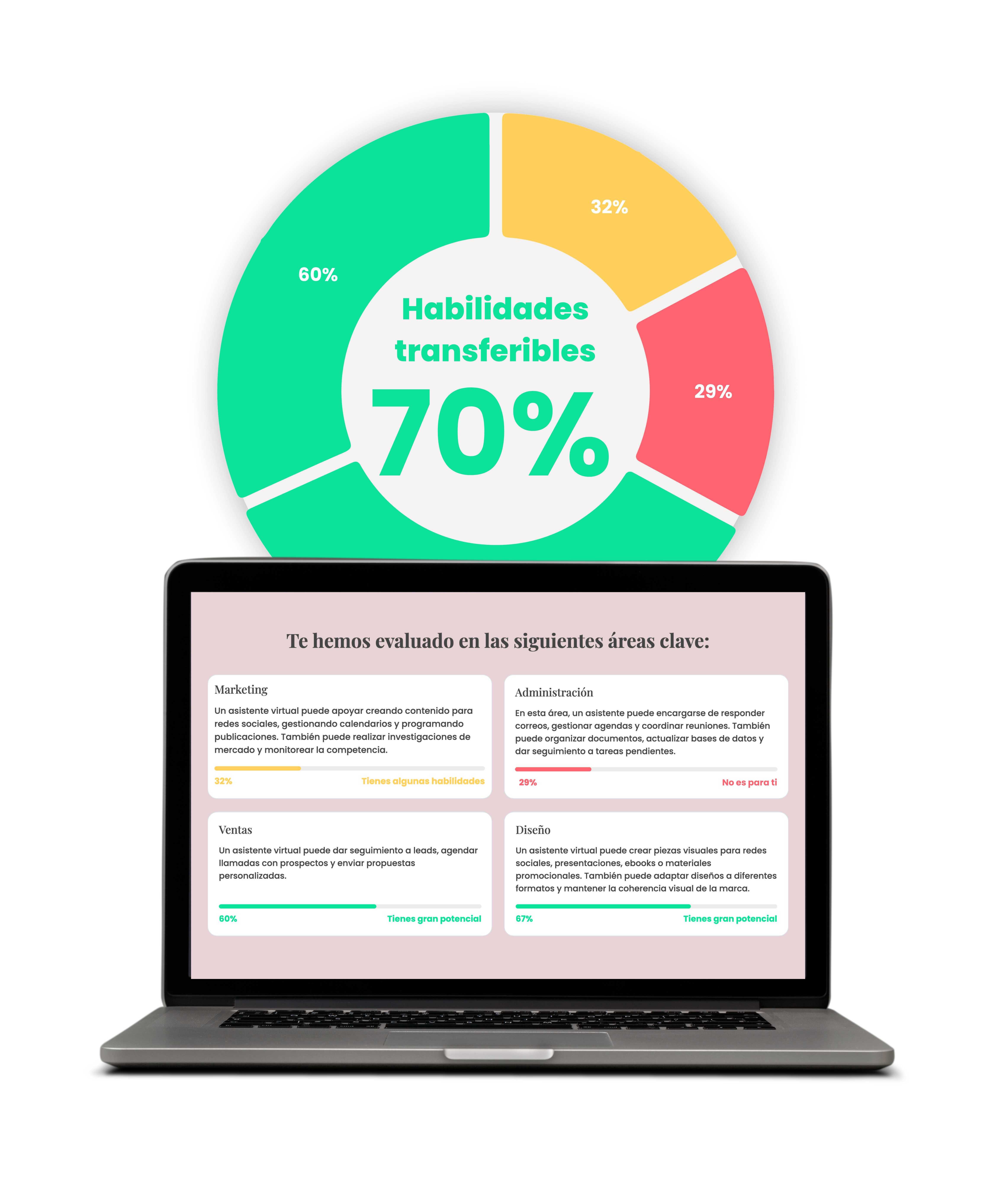 Recibirás un reporte personalizado con pasos exactos accionables para empezar a aplicar tus conocimientos para ser asistente virtual.